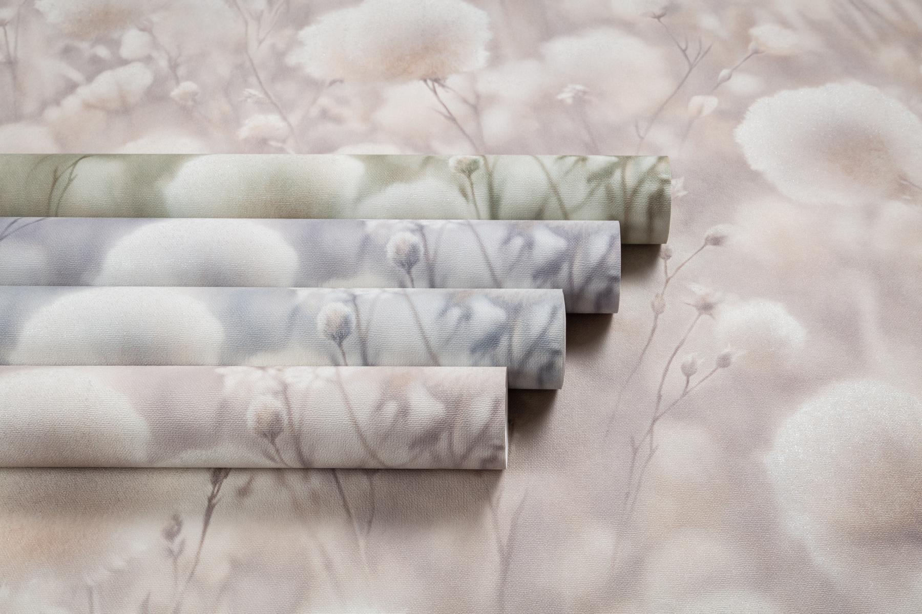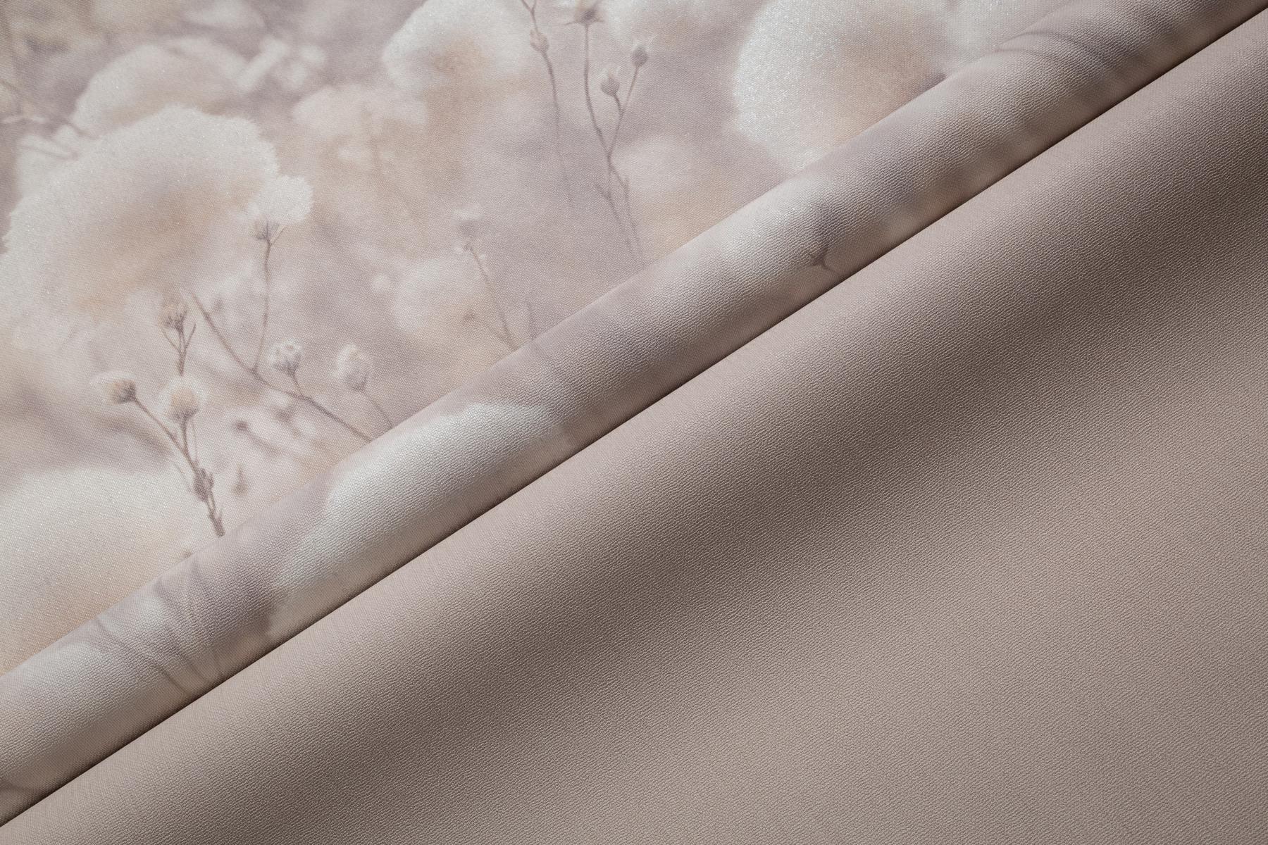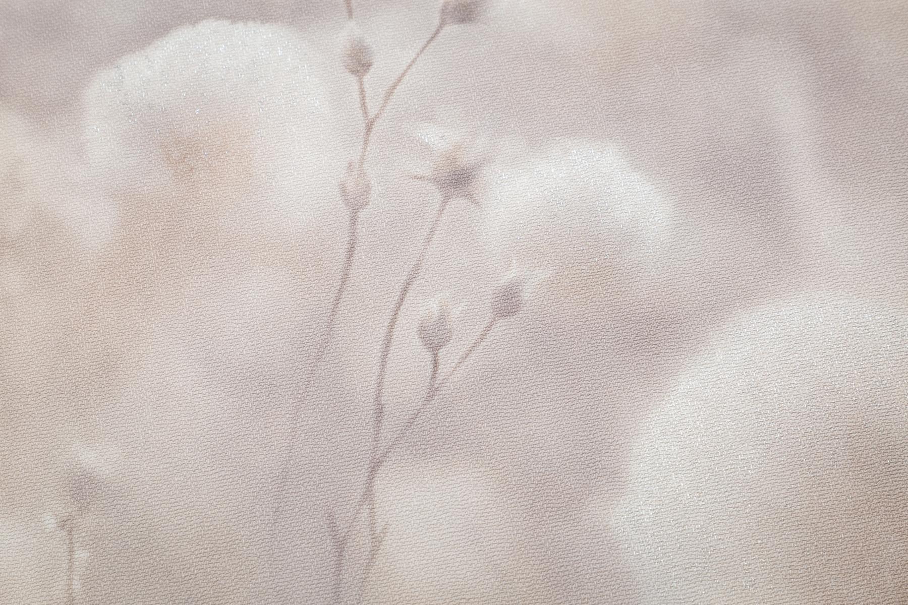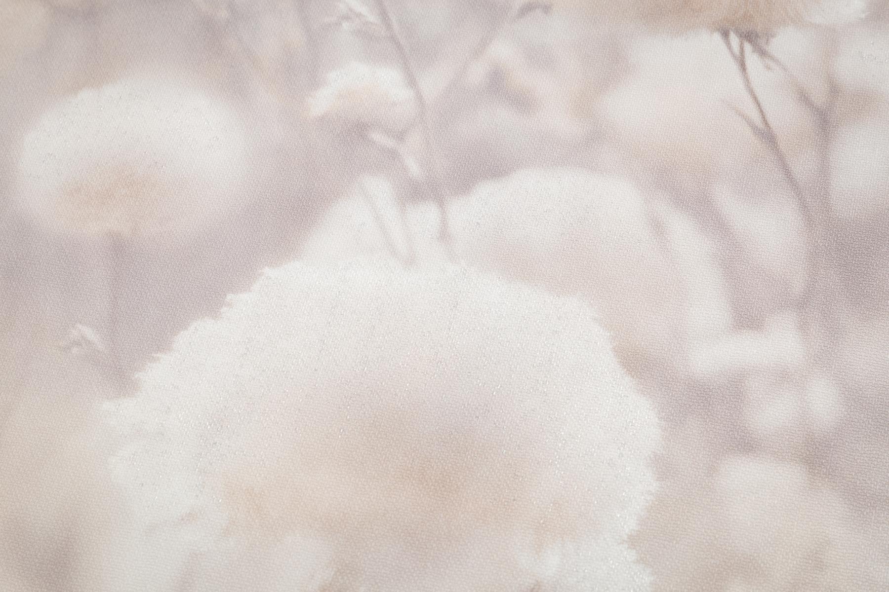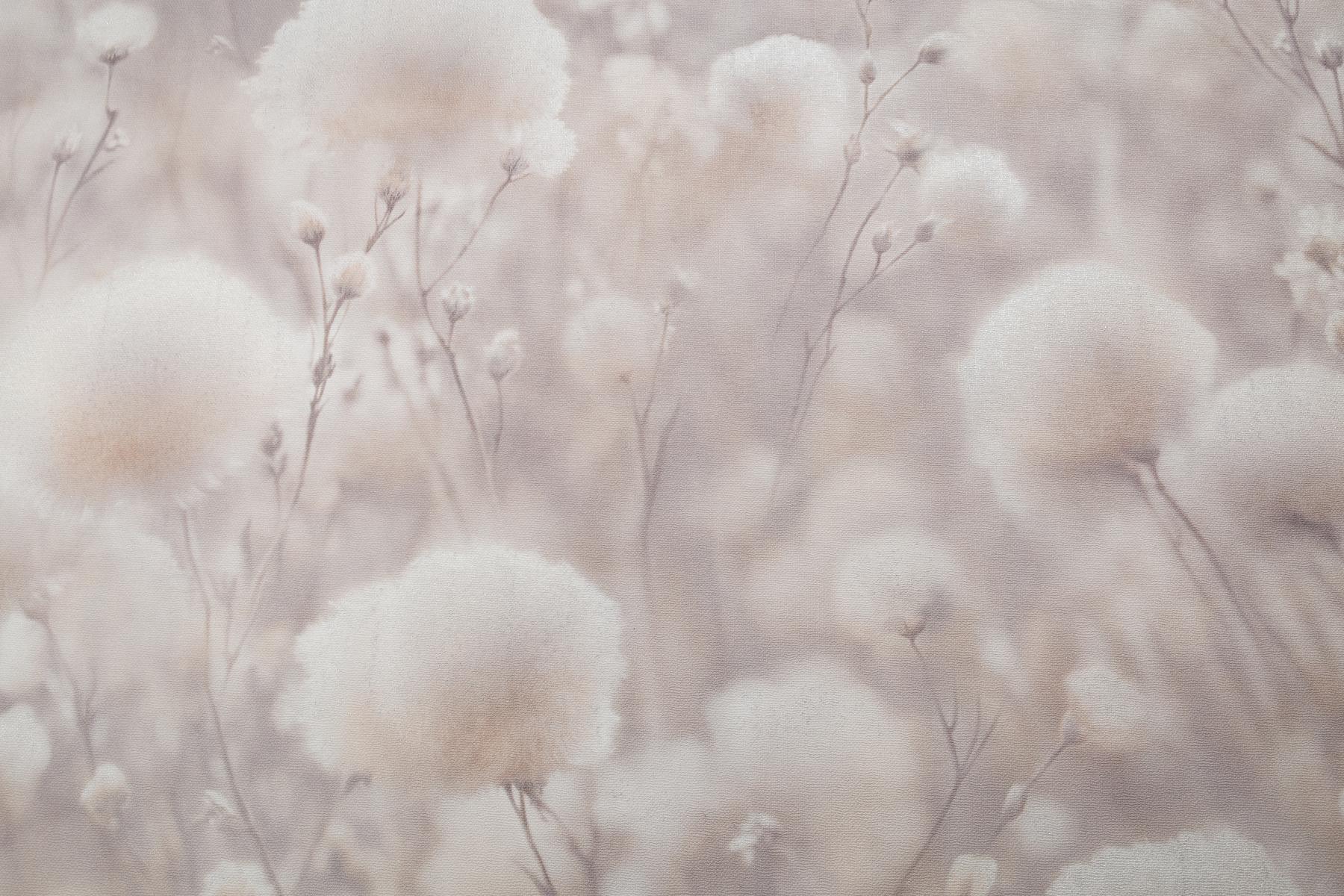 Воздушные соцветия хлопка, окутанные туманной дымкой, наполняют интерьер домашним уютом. Теплый пушистый мотив дышит нежностью летнего утра. Многоплановый рисунок Cottonia отрисован с фотографической точностью и создает эффект единого панно.