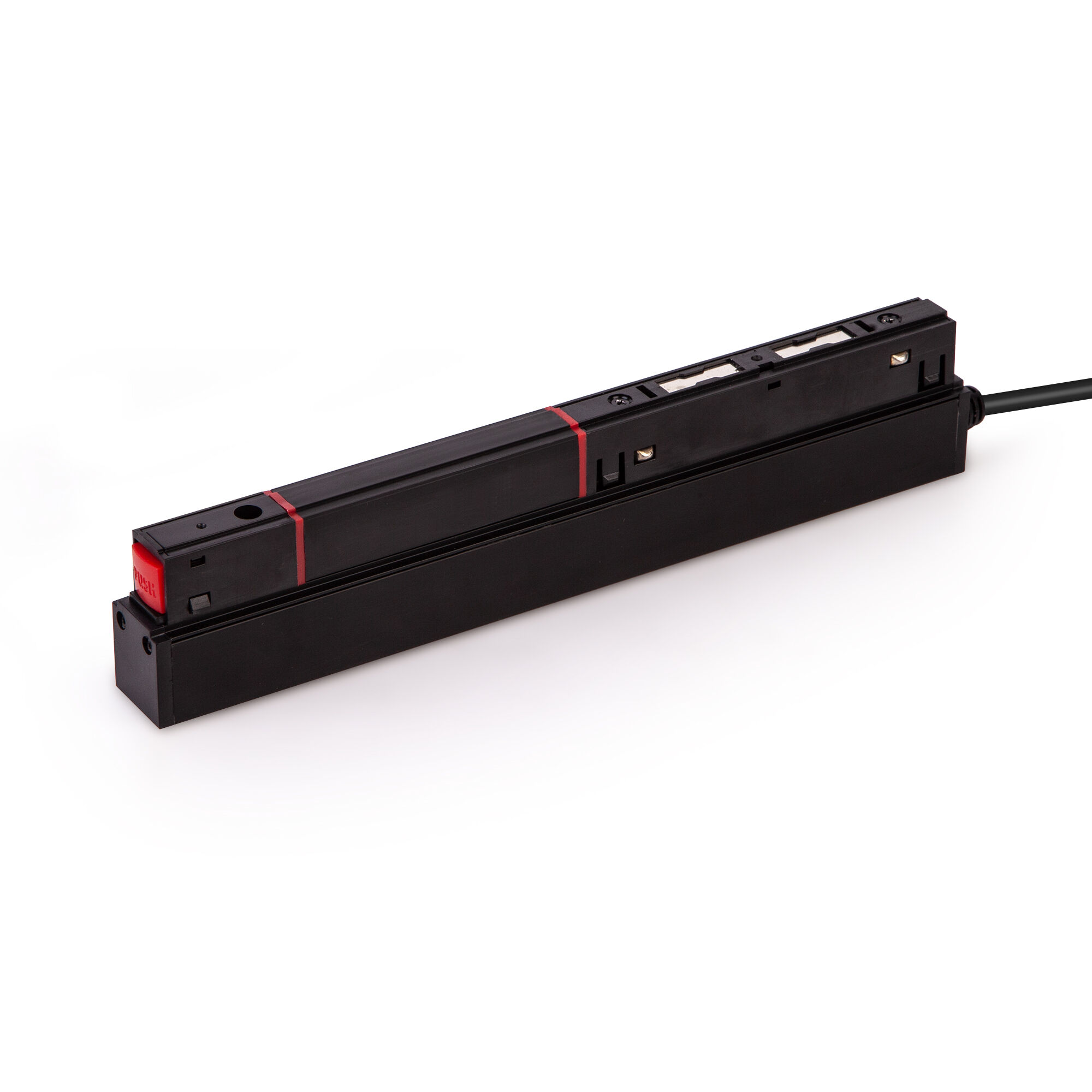 Блок питания черного цвета с мощность 100Вт коллекции Slim Magnetic преобразует переменное напряжение электрической сети в постоянное напряжение 48В для работы трековой системы.