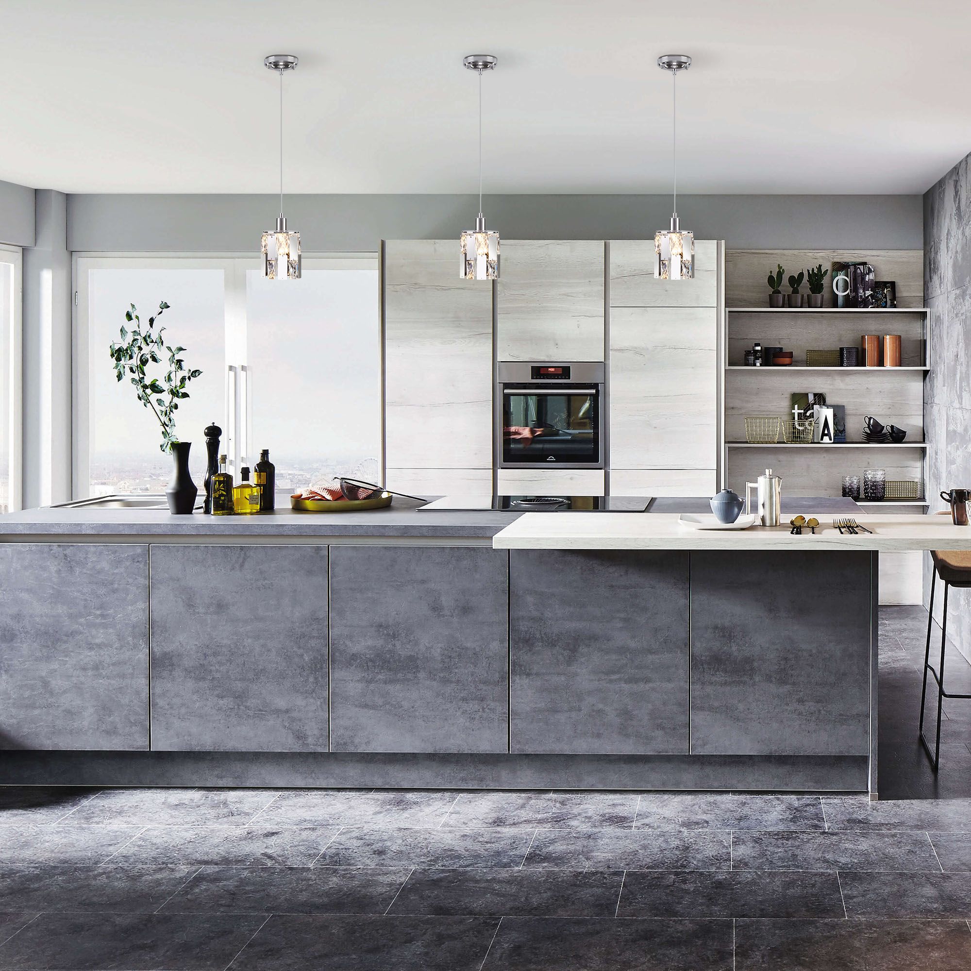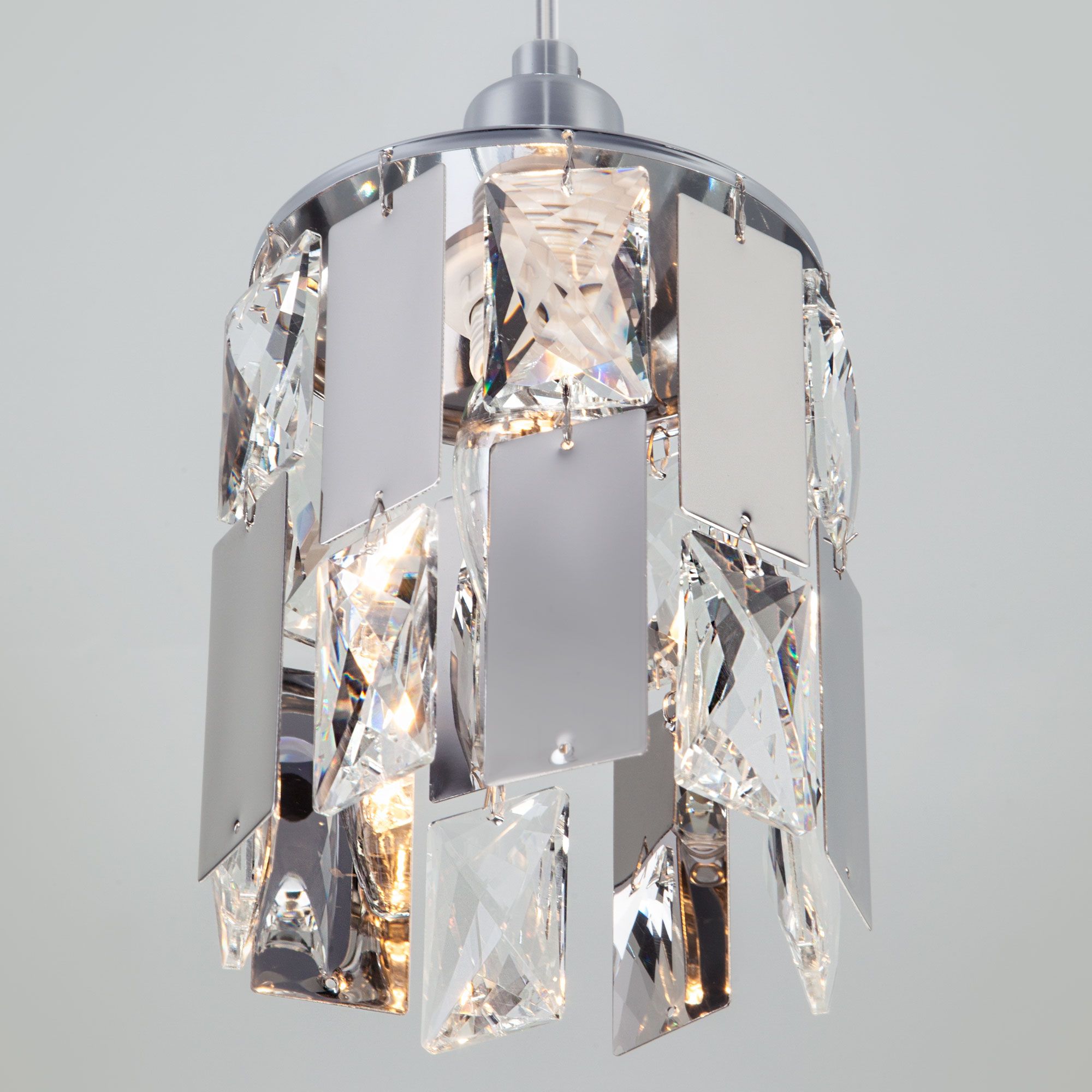 Подвесной светильник с хрусталем 50101/1 в цвете хром предназначен для создания дополнительного освещения и акцентной подсветки в современных интерьерах. Светильник со сменной лампой E14 создаст качественное освещение на площади 4 кв.м. и подсветит рабочие зоны на кухне, в гостиной, в кабинете и других местах.