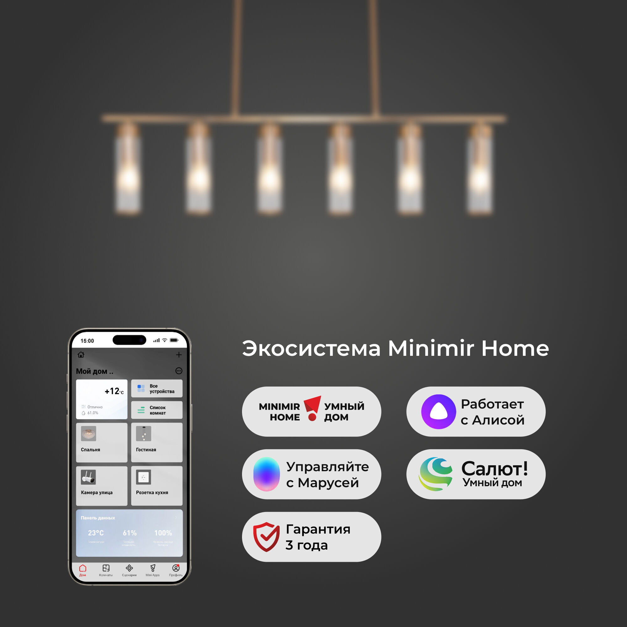 Светильник подойдет для помещений с различным уровнем потолка благодаря регулировке по высоте.