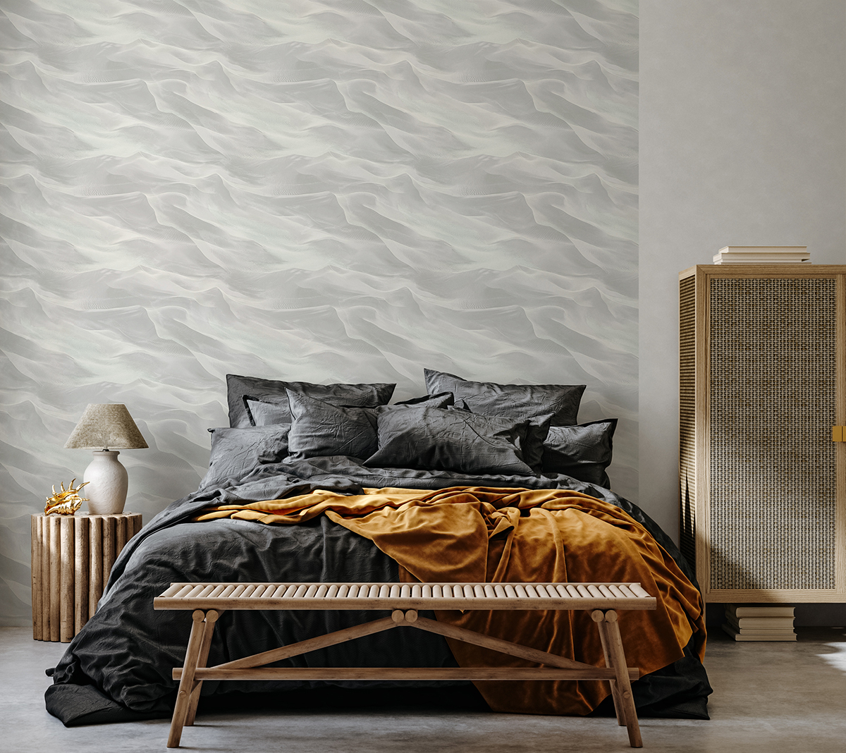 Песок, движимый ветром, создаёт постоянно меняющийся рельеф, который очаровывает своей непредсказуемостью. Коллекция обоев «Дюна» отражает застывший миг этого природного танца, превращая его в утончённый элемент интерьера. Мягкие изгибы линий и контрастные тени формируют изысканный принт, который передаёт дух пустыни и её величие. Эти обои наполняют пространство атмосферой безмятежности, подчёркивая природную гармонию и элегантность. Воплощая красоту природы в деталях, они становятся выразительным акцентом, придающим интерьеру тепло, стиль и уникальный характер.