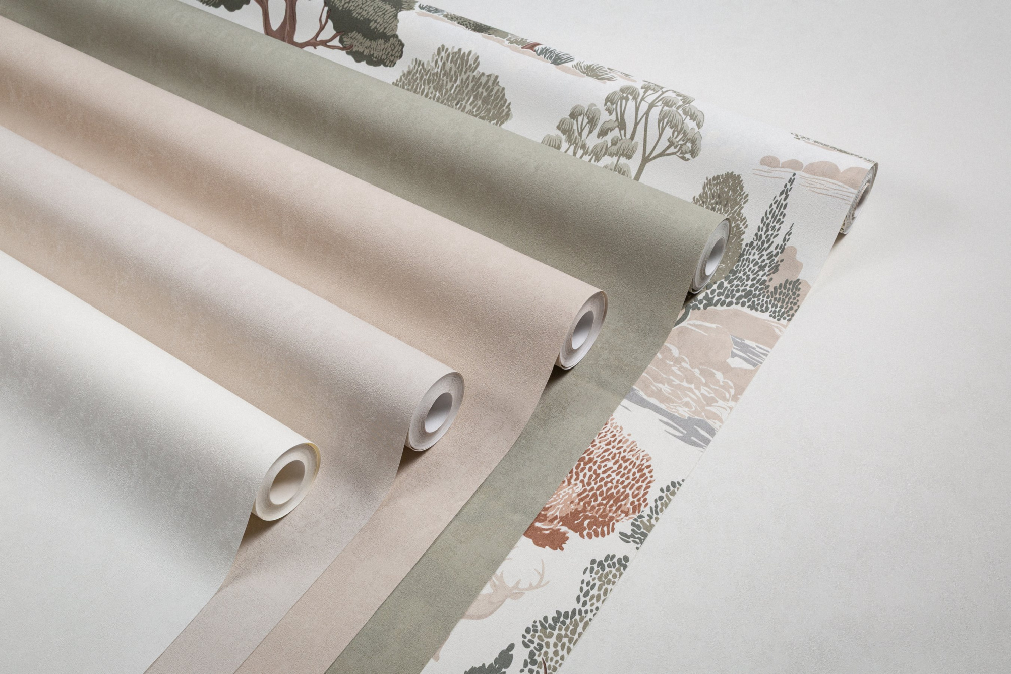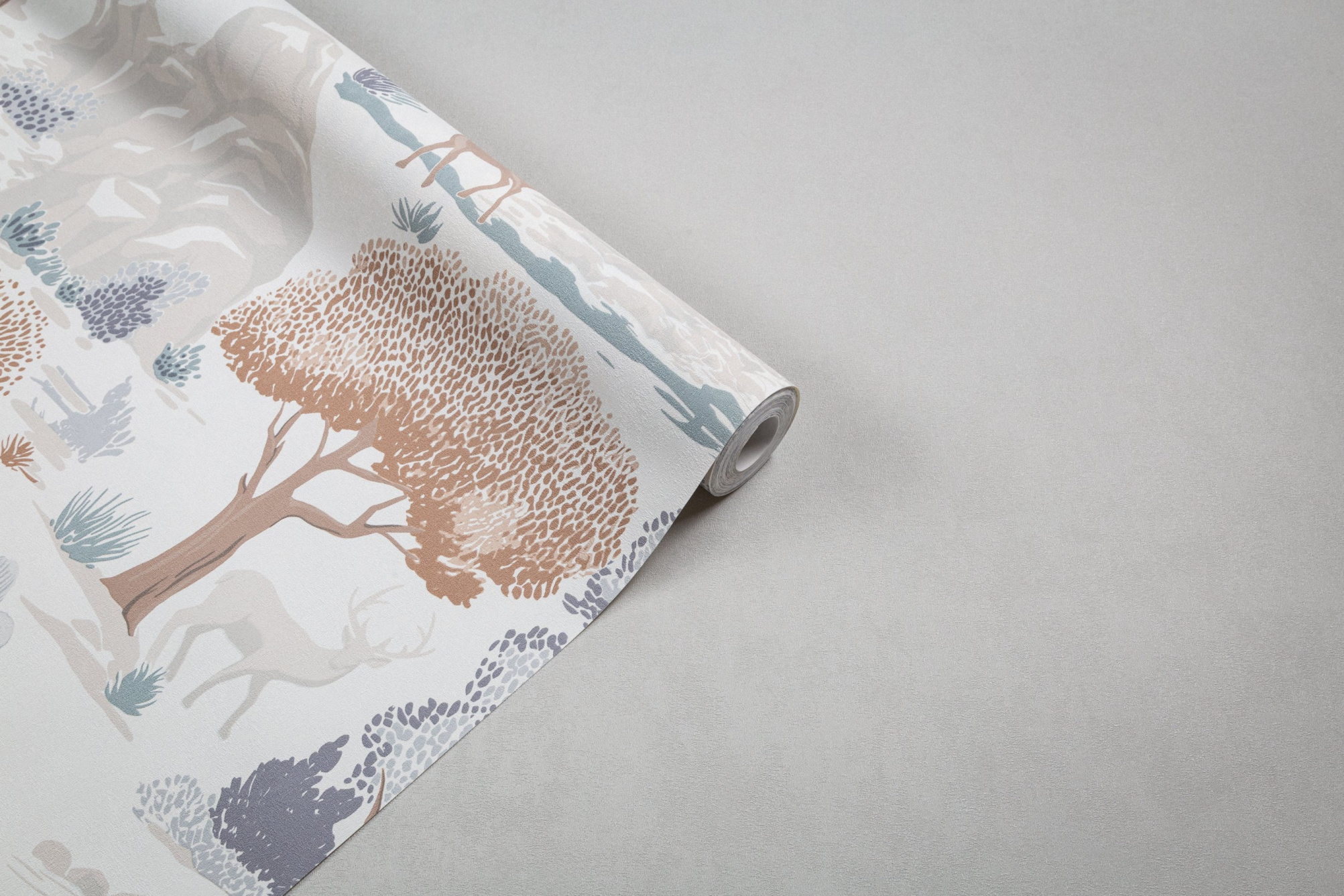 Живописный сюжет с деревьями и оленями в nordic-стиле.