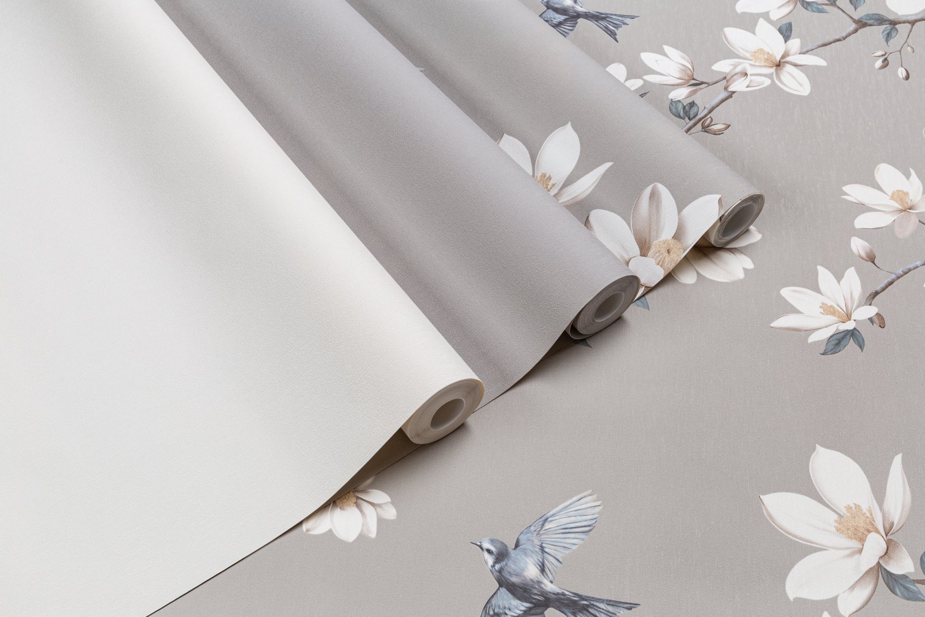 Авантажную тему обоев Magnolia составляют изящные соцветия магнолии и веселое щебетание порхающих в воздухе птиц – весенний мотив, который наполнен светлой радостью от пробуждения природы.