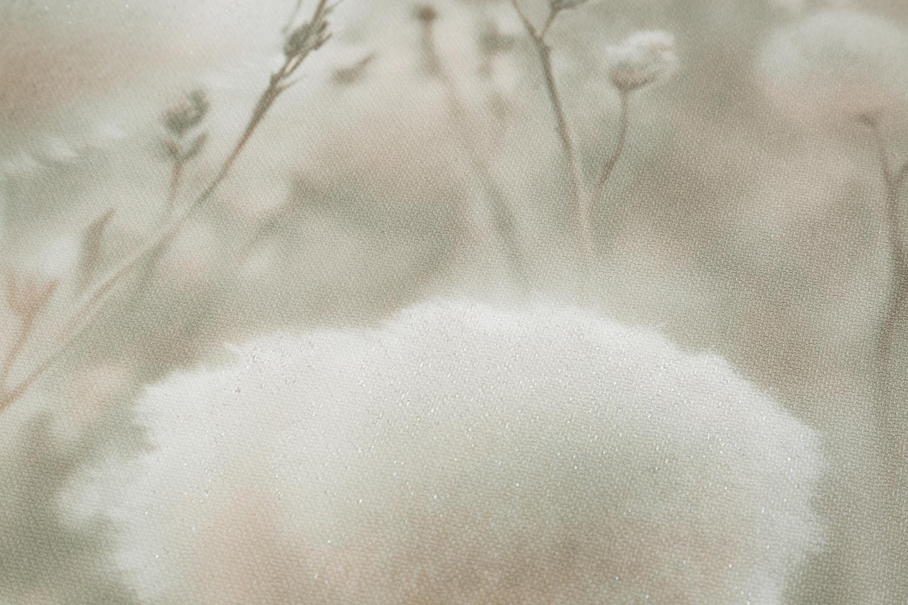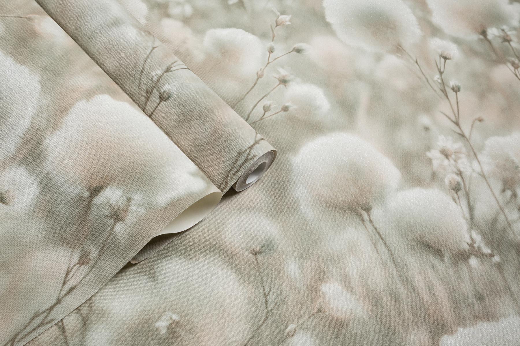 Воздушные соцветия хлопка, окутанные туманной дымкой, наполняют интерьер домашним уютом. Теплый пушистый мотив дышит нежностью летнего утра. Многоплановый рисунок Cottonia отрисован с фотографической точностью и создает эффект единого панно.