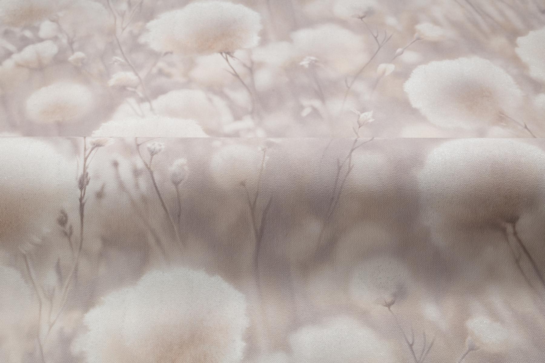 Воздушные соцветия хлопка, окутанные туманной дымкой, наполняют интерьер домашним уютом. Теплый пушистый мотив дышит нежностью летнего утра. Многоплановый рисунок Cottonia отрисован с фотографической точностью и создает эффект единого панно.