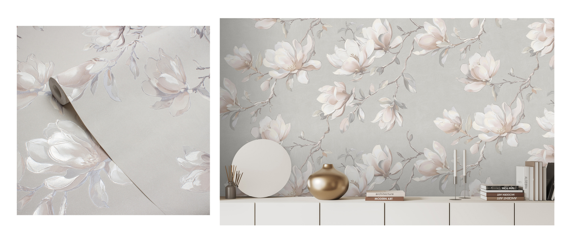 Обои флизелиновые "Magnolia", мотив бежевый 1.06*10 м.