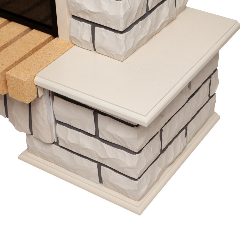 Каминокомплект в стиле кантри изготовлено из искусственного белого камня и шпонированного МДФ. Электрокамин укомплектован электроочагом с великолепным пламенем, пламя в очаге смотрится выразительно и эффектно, а муляж дров создаёт полное сходство с натуральным камином. В камине предусмотрена функция регулировки яркости пламени, термостат, таймер отключения и защита от перегрева. Присутствует звуковой эффект горения пламени и потрескивания дров. Очаг может работать как в режиме обогрева, так и в декоративном режиме без обогрева. В режиме обогрева в очаге предусмотрено 2 уровня регулировки обогрева, возможно переключение мощности обогрева 1000-2000 Вт, поэтому в холодные дни данный электрокамин можно использовать как дополнительный источник тепла. Комплектуется пультом дистанционного управления.