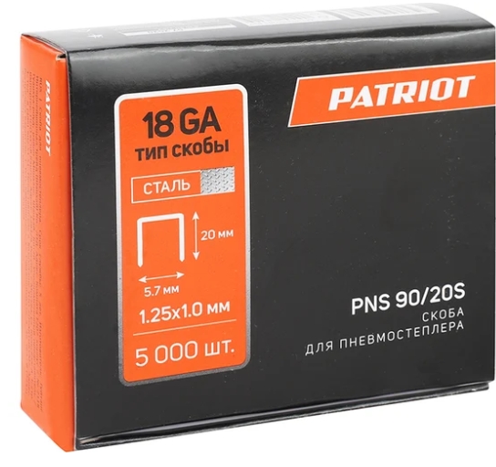 Скоба для пневмостеплера узкая PNS 90/20S тип (18GA) // PATRIOT 5000шт