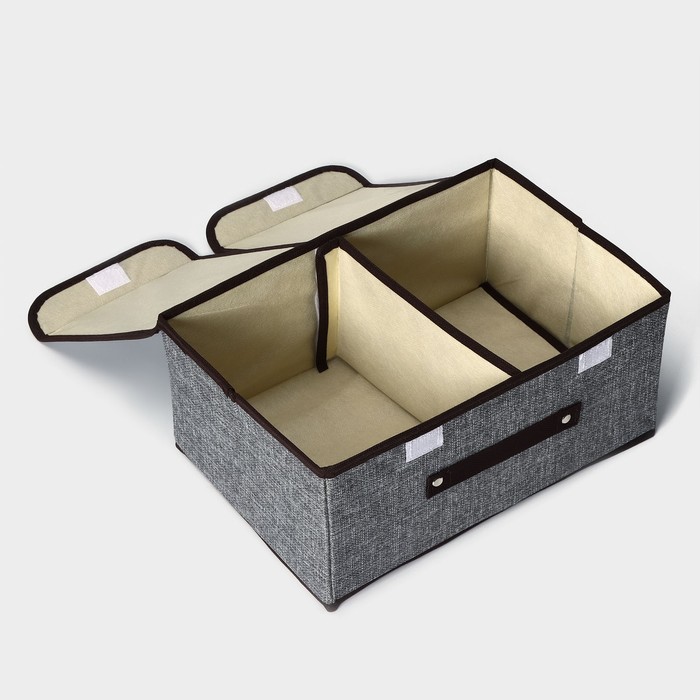 Короб стеллажный для хранения с двойной крышкой Доляна «Тэри», 36×25×16 см, серый