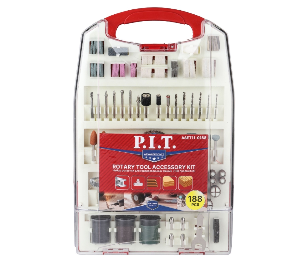 Набор принадлежностей для гравировальных машин 188 предметов/пластик,кейс(ASET11-0188)//PIT