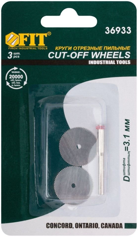 Круги отрезные FIT (36933) HSS, 2шт+штифт 3мм