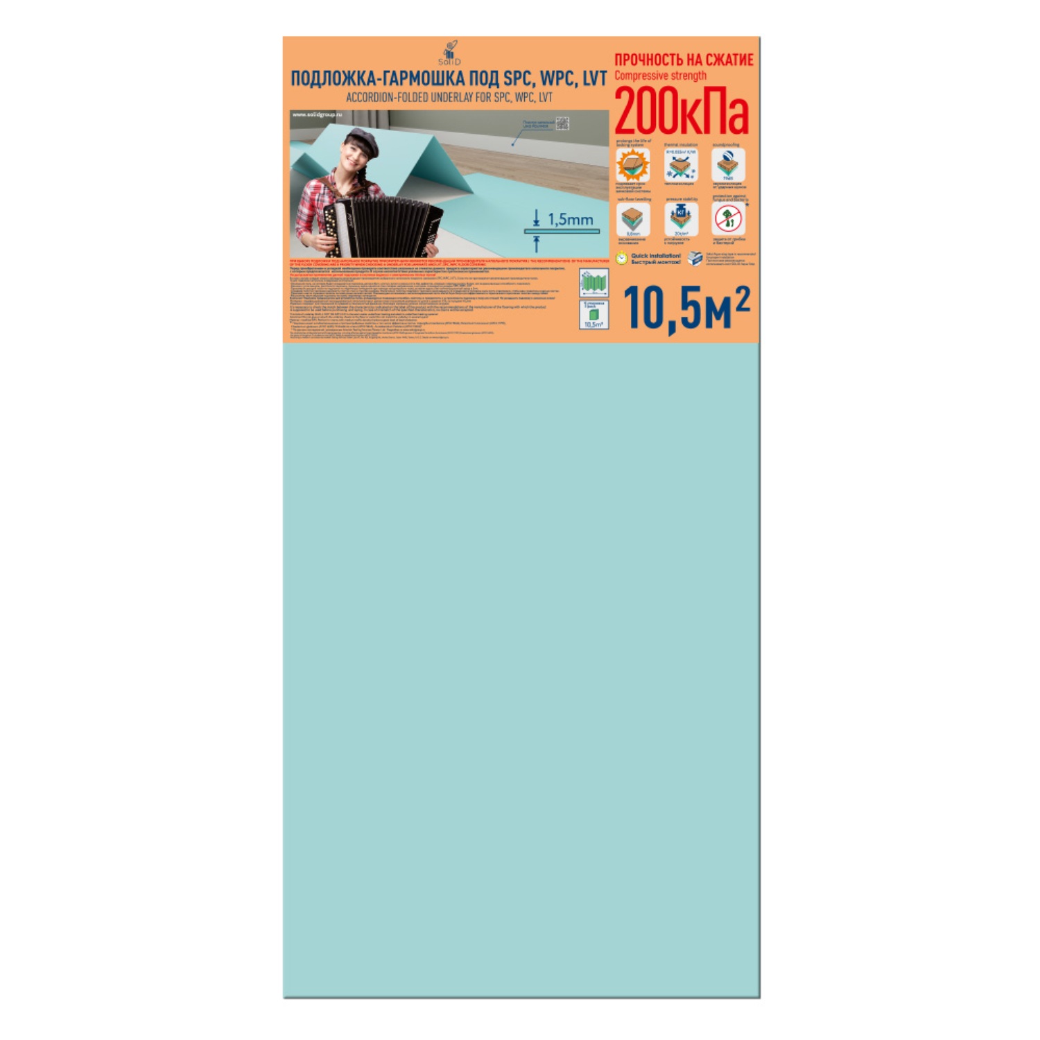 Подложка-гармошка под SPC, WPC, LVT 1050*500*1,5 мм, зеленая (10,5 м2)