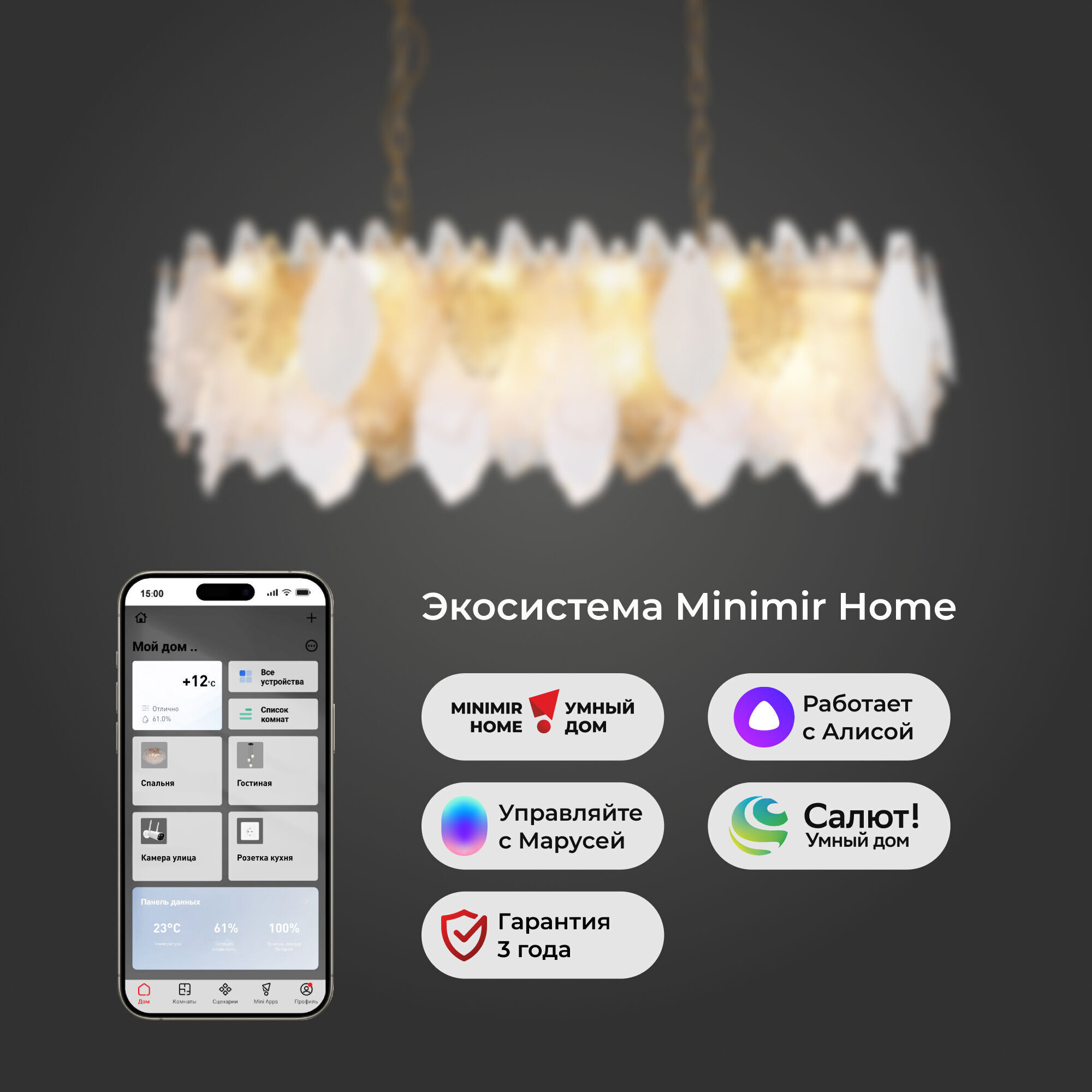 Светильник со стеклянными лепестками оснащен системой регулировки высоты подвеса, позволяющей размещать изделие на разных уровнях, уменьшая или увеличивая угол рассеивания светового потока. Накладной светильник легко устанавливается на подвесных потолках при помощи монтажной планки.