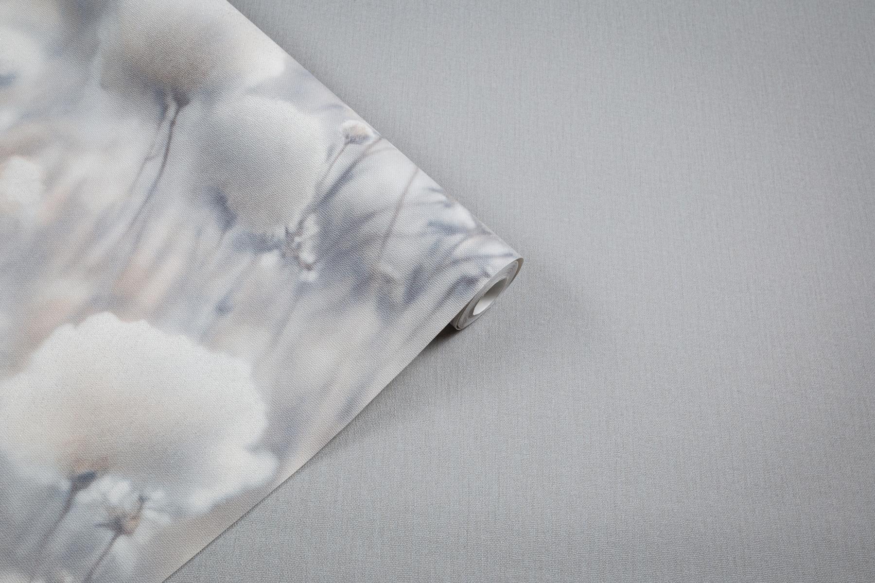 Воздушные соцветия хлопка, окутанные туманной дымкой, наполняют интерьер домашним уютом. Теплый пушистый мотив дышит нежностью летнего утра. Многоплановый рисунок Cottonia отрисован с фотографической точностью и создает эффект единого панно.