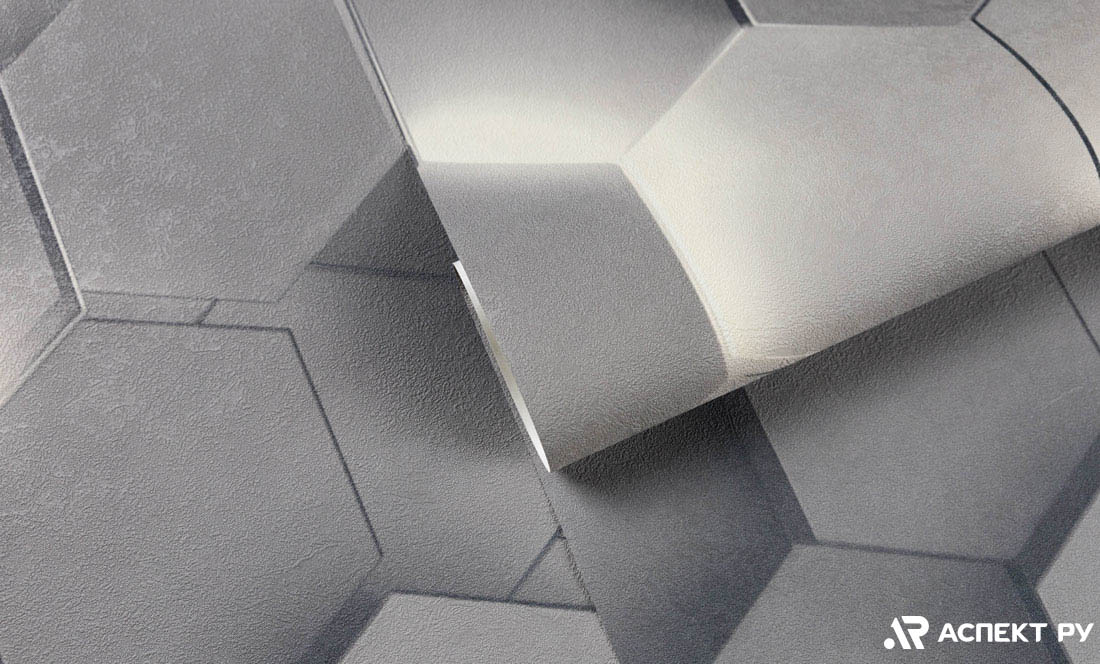 Обои флизелиновые "Гексагон" мотив серый 1.06*10.05м
