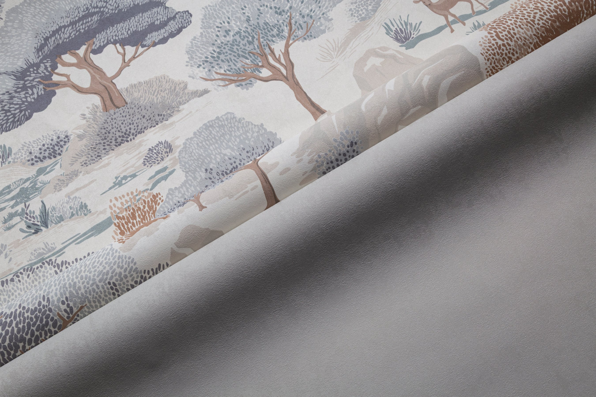 Живописный сюжет с деревьями и оленями в nordic-стиле.