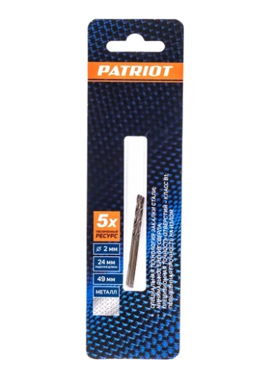 Сверло PATRIOT по металлу 2,0 мм, 3шт в блистере