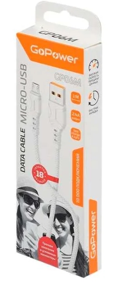 Кабель GoPower GP06M USB (m)-microUSB (m) 2.4A ПВХ белый
