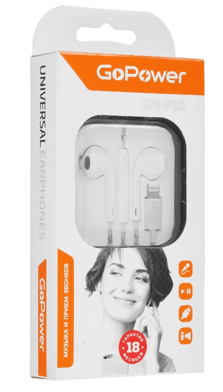 Наушники GoPower GPHP10 Lightning (m) белый