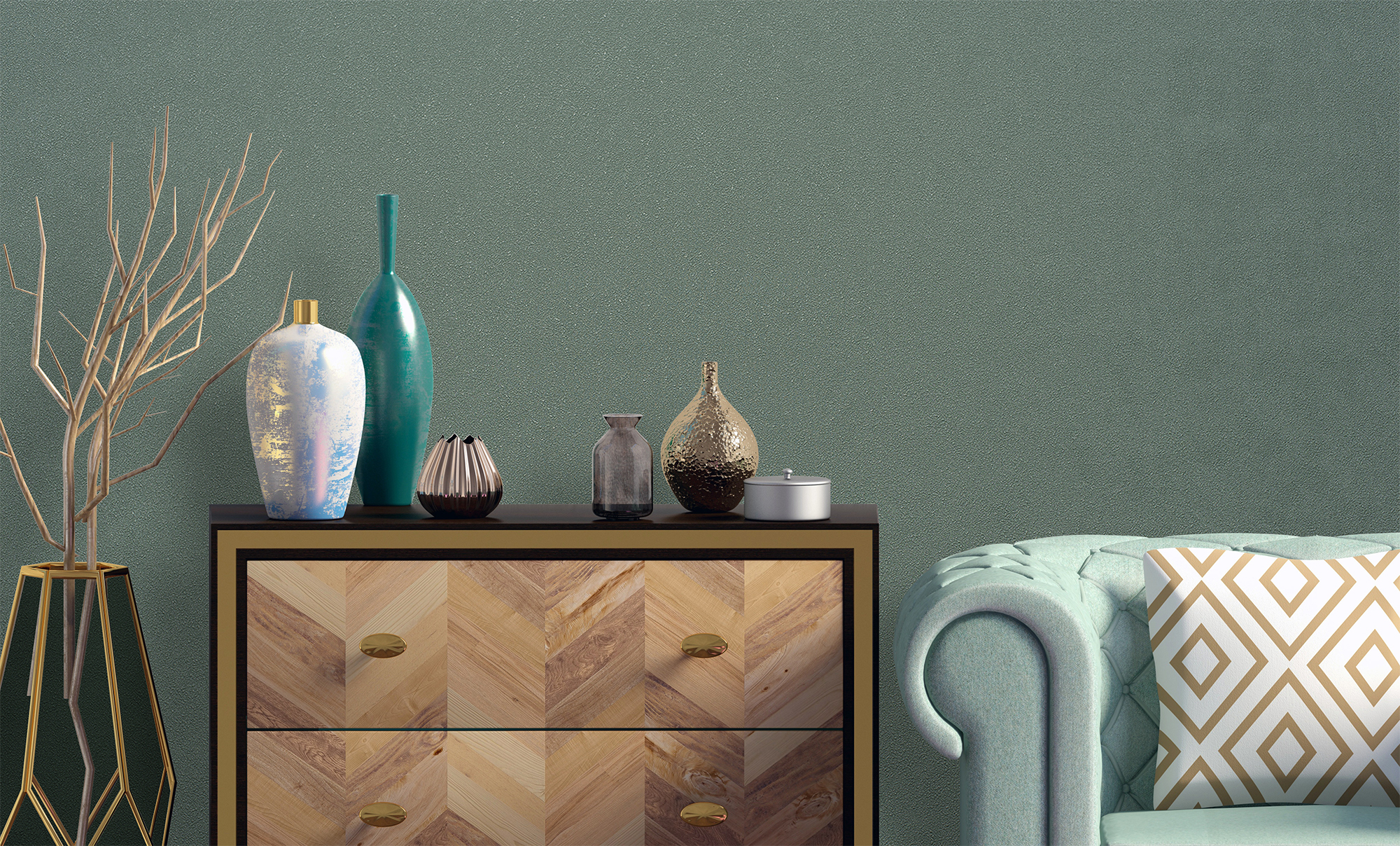 Обои флизелиновые "Kaleidoscope", фон зелёный 1,06х10 м
