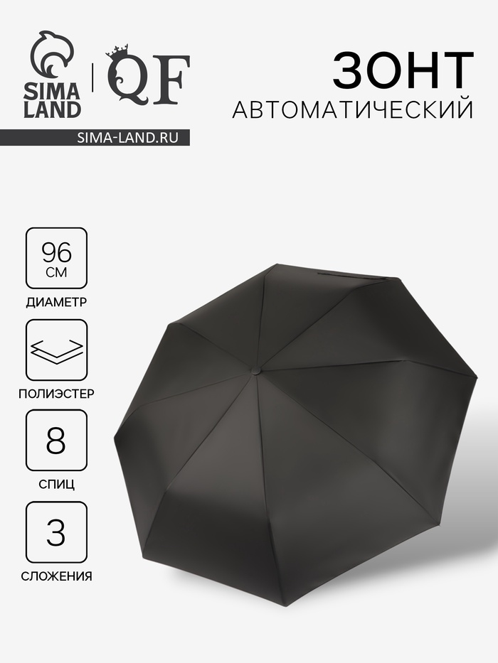 Зонт авт R48/55 8сп 3сл П/Э ОДНОТОН ручка-крюк с/рез черный пакет