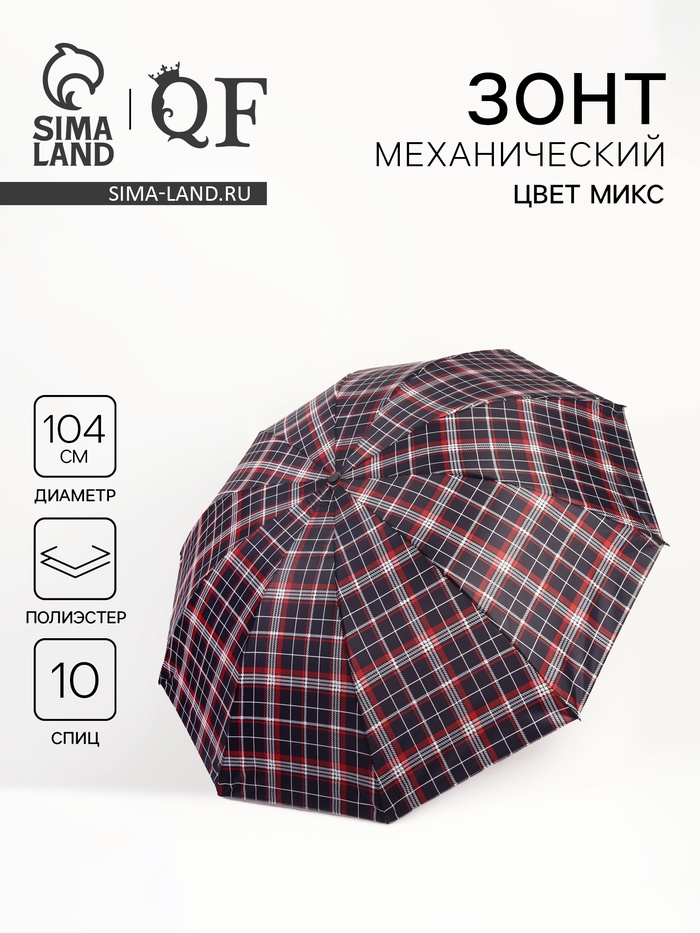Зонт мех R53/60 10сп 4сл П/Э КЛЕТКА прямая ручка б/рез МИКС пакет